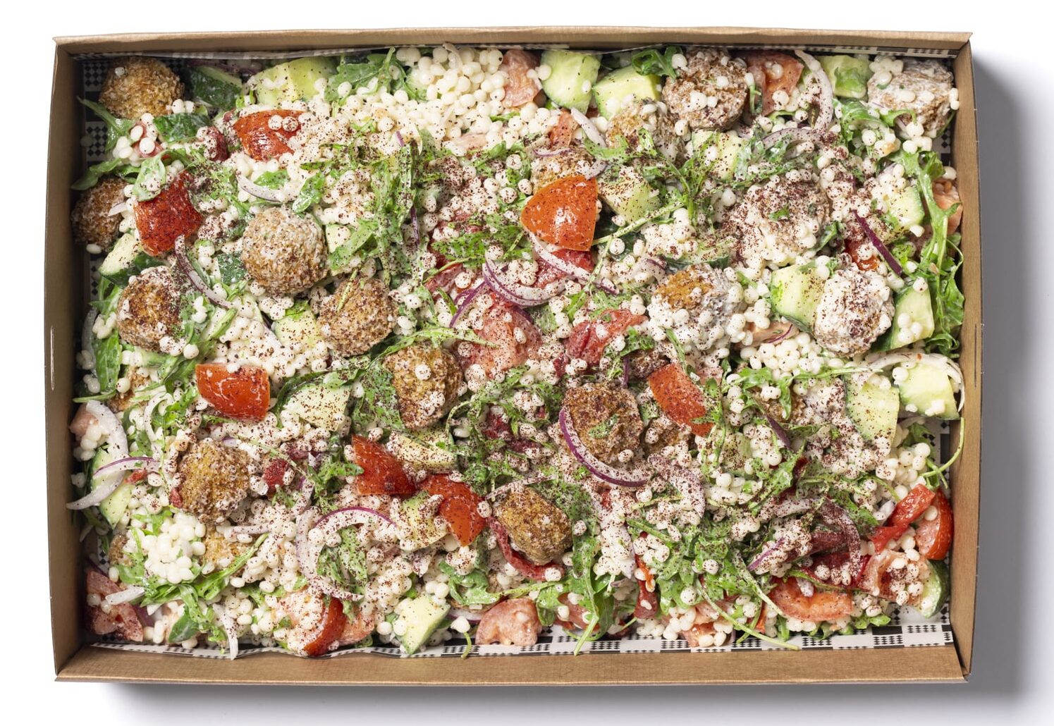 Tomato, Cucumber, Roasted Capsicum, Spring Onion, Rocket & Yoghurt Dressing
