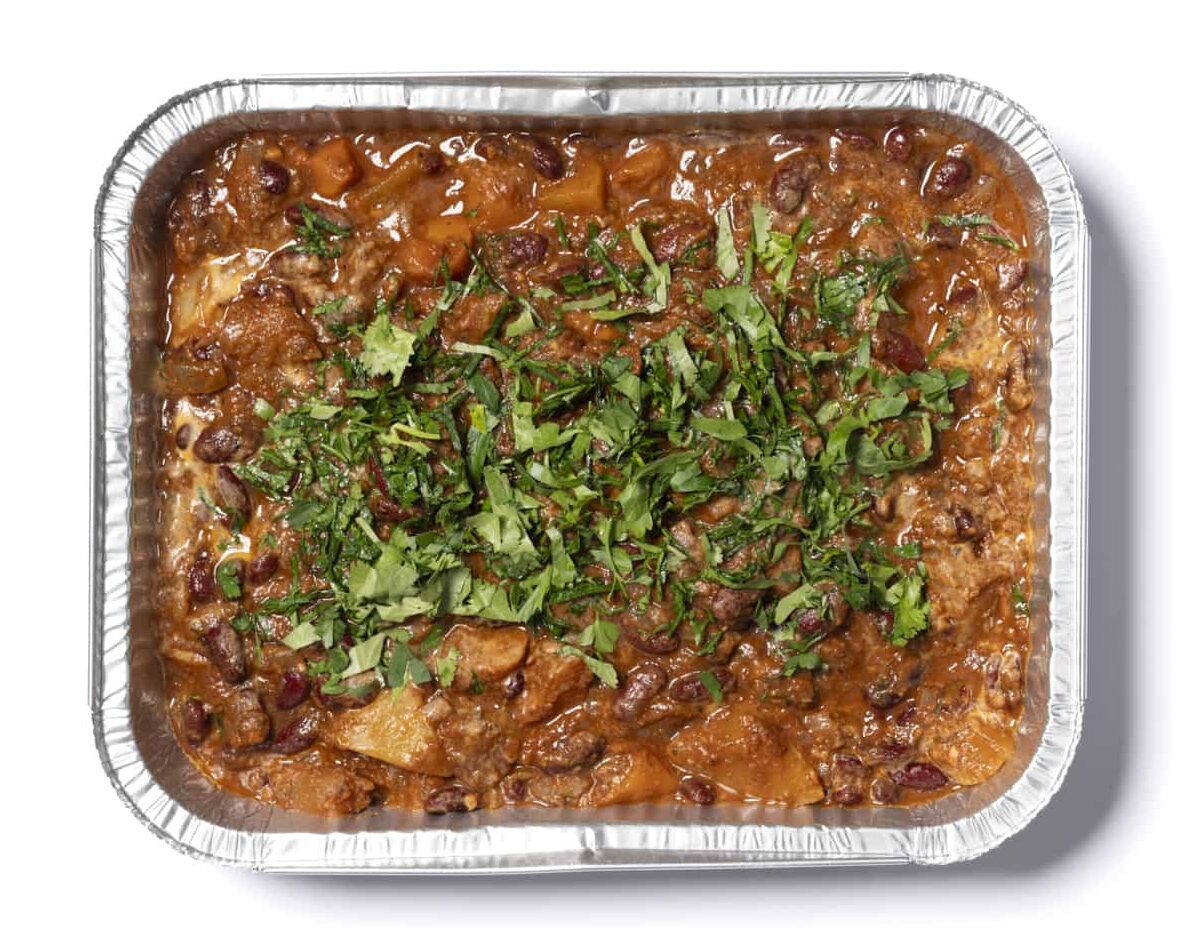 Hearty red kidney bean stew with root vegetables, spiced tomato & caramelised onion