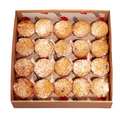 An assortment of seasonal bite sized mini muffins dusted in snow sugar